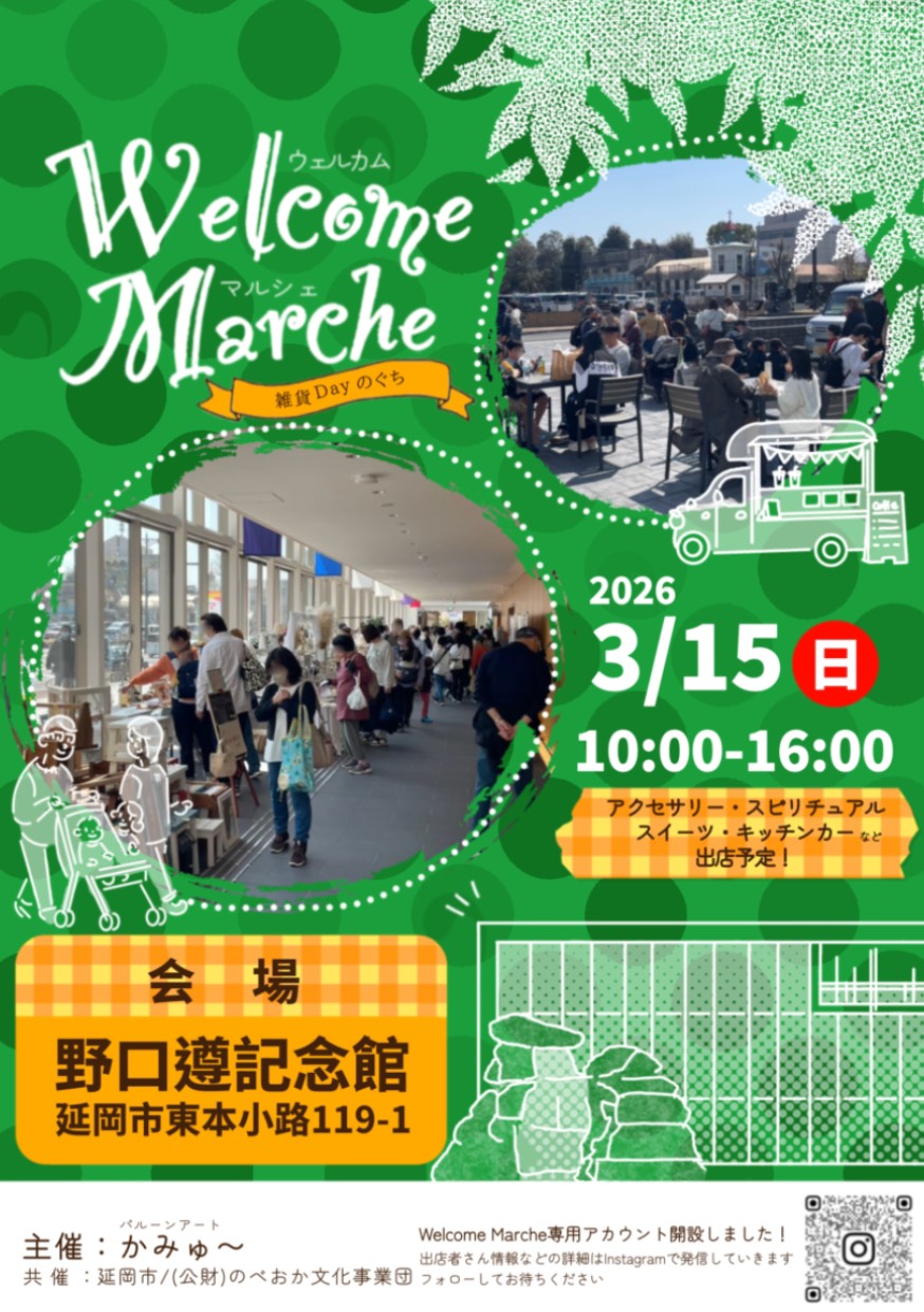 本日のイベント 3月2日( 月 ) ホール 本日のイベントはありません フリースペースA 本日のイベントはありません フリースペースB 本日のイベントはありません ギャラリー 野口遵顕彰ギャラリー ピックアップイベントPICK UP 2026年3月14日(土) 開場17:45 開演18:30 延岡フィルハーモニー管弦楽団≪楽団創立35周年記念》第21回定期演奏会 チケット発売中! 2026年3月15日(日) 10:00~16:00 延岡伝説の日 雑貨Dayのぐち「ウェルカムマルシェ」 2026年3月28日(土) 10:00~11:00(最終受付10:30) 楽しく学ぼう!わくわく科学遊びワークショップ「作って実験!キラキラ☆キーホルダー」 申込受付中! 2026年3月28日(土) 開場11:10 開演11:30 楽しく学ぼう!わくわく科学遊び チケット発売中! 2025年3月29日(日) 10:00~16:00 雑貨Dayのぐち「えんクラフトマーケットvol.9」 イベント情報 お知らせINFORMATION 2026.03.01 施設予約の受付開始時期について(野口遵記念館) 2025.11.10 延岡総合文化センター開館40周年記念 「文化祈念シンポジウム」の開催について 2024.11.29 公演チケットのオンライン購入について 2024.08.09 聴覚障がい者補聴誘導システム受信機貸出しのご案内 お知らせ一覧